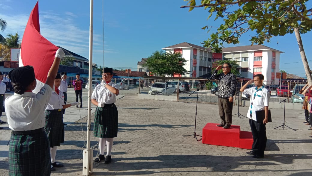 Banjarmasin, BARITO – Ratusan pelajar SD dan SMP Widya Dharma Banjarmasin menggelar upacara HUT Proklamasi ke-74 Republik Indonesia (RI), Sabtu (17/8) di Halaman Sekolah Widya Dharma Jalan Bandarmasih Komplek DPR No 04 Banjarmasin.