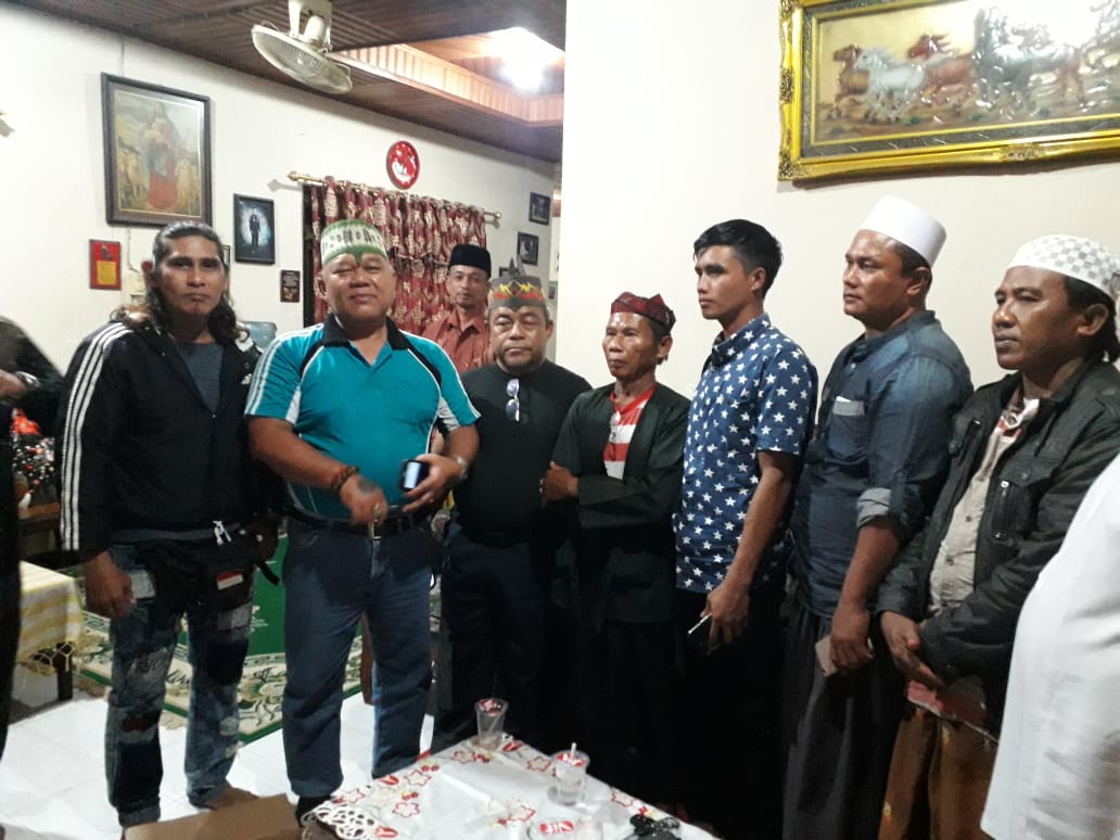 Pelaku pelecehan orang dayak dengan dikawal keluarga dan Polres Kotim, datang ketempat kediaman ketua DAD Kotim, Untung untuk meminta maaf atas perbuatannya. (ist).