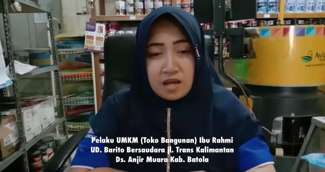 “Kalau sudah izin dipermudah, modal jadi bisa diperbanyak dan bisa membuka usaha baru lagi,” kata Ibu Rahmi dari UD. Barito Bersaudara Pelaku Usaha (Toko Bangunan) jl. Trans Kalimantan Desa Anjir Muara Kota RT 2 Kecamatan Anjir Muara Kab.Batola.