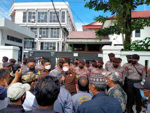 Karena masih dalam rangkaian acara, para pendemo hanya ditemui Kasi Penkum Novelino Romadu SH MH.