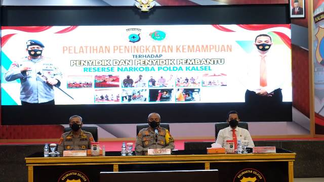 Pelatihan yang berlangsung di Aula Bhayangkari Mathilda Batlayeri ini, dihadiri oleh Direktur Resnarkoba Polda Kalsel Kombes Pol Tri Wahyudi, S.I.K., M.H., Kabid Propam Polda Kalsel Kombes Pol Dudy Iskandar, S.I.K., M.H., dan sejumlah personel Resnarkoba Polda Kalsel.