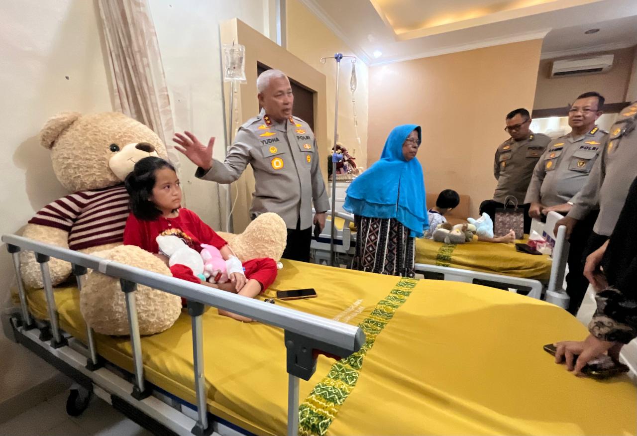 Kapolda Kalsel Irjen Pol Rosyanto Yudha Hermawan saat menjenguk Adel dan Jailani di RS Bhayangkara Banjarmasin. (Foto: Iman Satria)