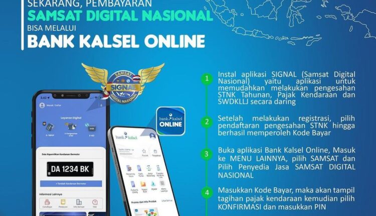 Banjarmasin, BARITO – Memberikan kemudahan pada nasabahnya, Bank Kalsel terus melakukan inovasi. Kali ini, melalui aplikasi Bank Kalsel Online bisa melakukan pembayaran Samsat Digital Nasional (SIGNAL).