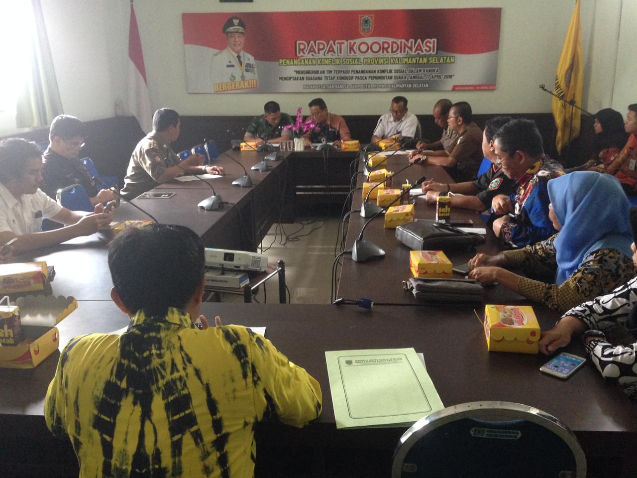 Rakor yang dipimpin Kepala Bidang Kewaspadaan Nasional Bakesbangpol Kalsel, Firmansyah itu membahas kerawanan konflik yang terjadi di Provinsi Kalsel.