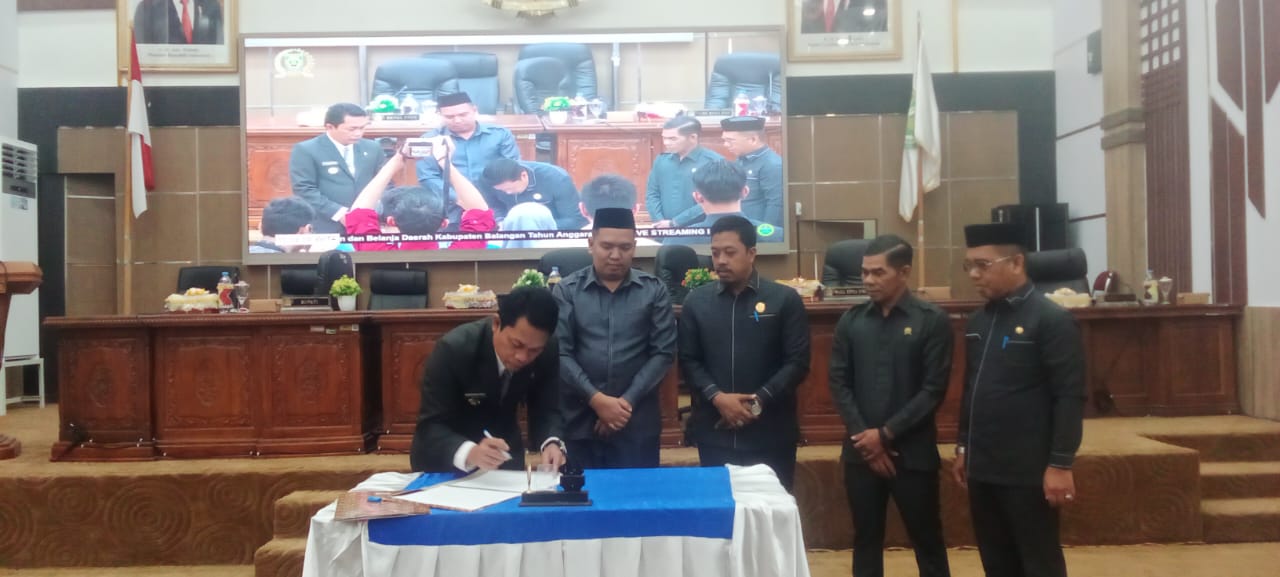 Persetujuan raperda pertanggungjawaban pelaksanaan APBD TA 2023 ditandatangani langsung oleh Bupati Balangan, H Abdul Hadi bersama Ketua DPRD Balangan, Ahsani Fauzan, Wakil Ketua I DPRD Balangan, Muhammad Ifdali dan Wakil Ketua II DPRD Balangan, Hanil Tamjid.