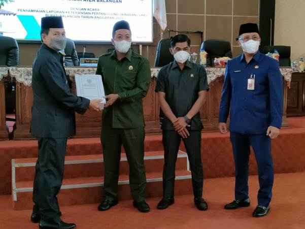 Terakhir, pihaknya berharap laporan ini cepat dibahas oleh pihak dewan, dan tentu pihak dewan dapat memberikan rekomendasi atau masukan yang positif guna perbaikan penyelenggaraan tugas-tugas Pemerintah Kabupaten Balangan di tahun-tahun mendatang, dengan semangat HUT Kabupaten Balangan ke -19 Banua Maju Rakyat Katuju.