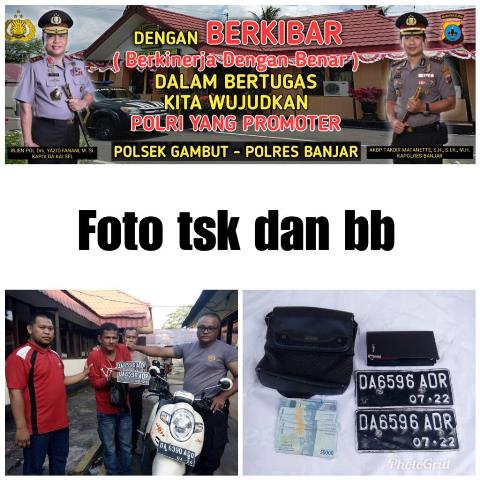Pencurian itu terjadi di tepi Jalan A Yani Km 16.500 Kelurahan Gambut Kecamatan Gambut Kabupaten Banjar. Akibat pencurian itu korban bernama Muhammad Isnaini ((37) nyaris kehilangam uangnya sebesar Rp 2.620.000 dan satu kartu ATM CMB Niaga.