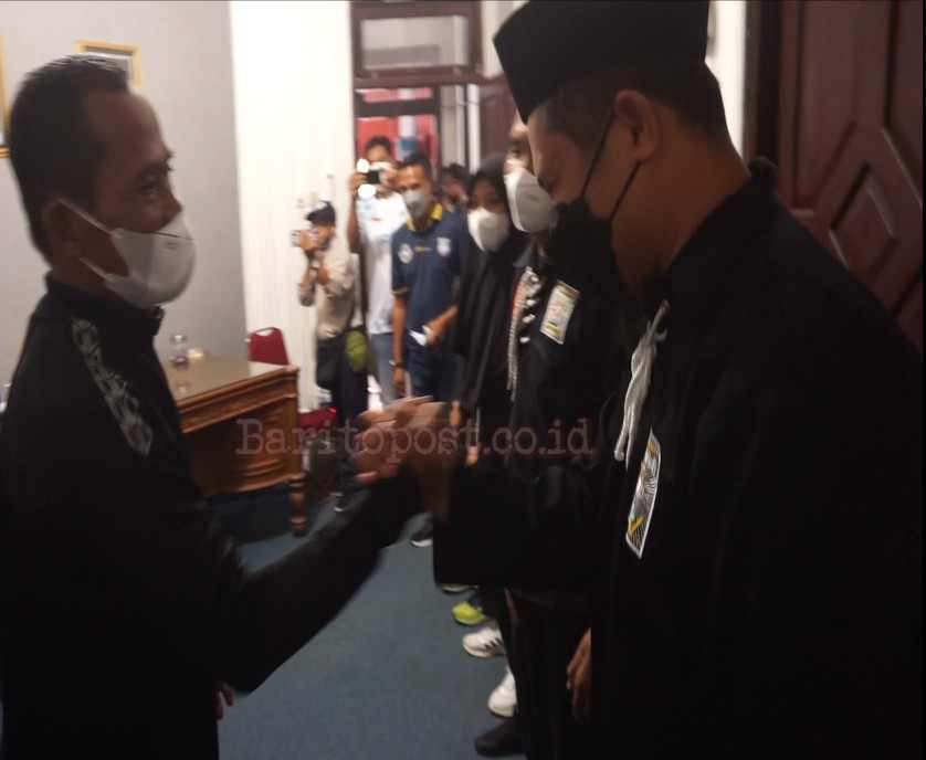 Pelaihari,BARITO – Disalah satu ruangan pada kantor Dinas Kepemudaan dan Olahraga (Dispora) Tanah Laut, Bupati Tala HM.Sukamta telah ditunggu para pendekar Silat yang selanjutnya para pendekar silat tersebut akan bertolak mengikuti kejuaran Silat tingkat dunia diajang Piala RM Imam Koessoepangat di Taman Mini Indonesia Indah (TMII) Jakarta, dari tanggal 28 sampai 30 Oktober 2021.