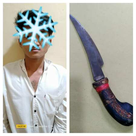 Warga Jalan Kuin Utara Gang SMP 15 Kelurahan Kuin Utara Kecamatan Banjarmasin Utara itu diringkus tim gabungan kepolisian tiga Minggu setelah kejadian . Termasuk satu bilah senjata tajam (sajam) jenis Pisau belati dengan gagang terbuat dari kayu warna coklat tanpa sarung berhasil disita.