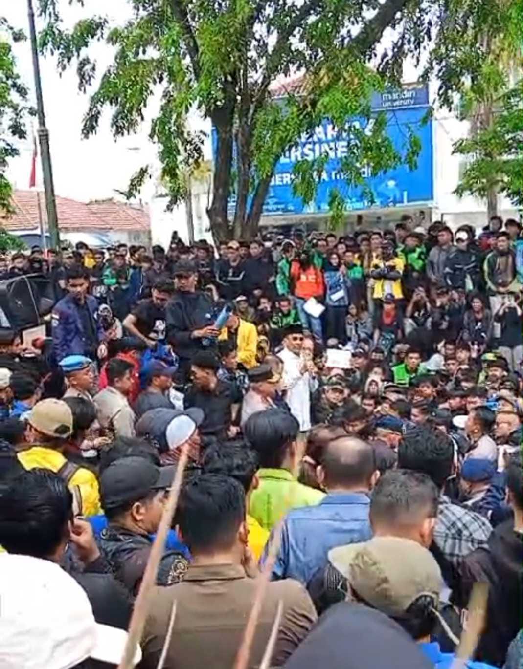 Sementara itu Supian HK dan beberapa wakil ketua dewan hadir menemui para peserta aksi dan disambut antusias