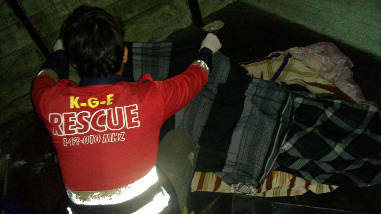 DUA HARI-Diduga seorang gelandangan meninggal dunia dua hari kemudian diketahui warga Jalan Antaran Raden Gang Kenangan RT 20/02 No 51 Kelurahan Teluk Tiram Banjarmasin Barat saat dievakuasi salah satu anggota emergency. (foto:ist)