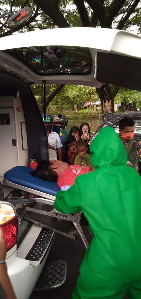 Warga yang kaget dibantu relawan langsung mengevakuasinya menuju IGD RS Suaka Insan tidak jauh dari lokasi kejadian. . Sayangnya korban tidak lama kemudian dinyatakan meninggal dunia.