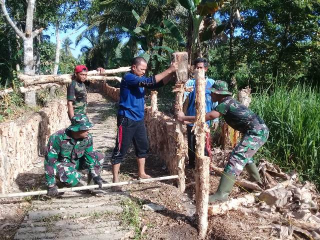 Pengerjaan Siring Jalan Kuin Kecil RT 14 Kelurahan Mantuil Kecamatan Banjarmasin Selatan terus digenjot dalam program TNI Manunggal Membangun Desa (TMMD)  ke 106 oleh Kodim 1007/Bjm, Jumat (28/6/2019). Sebanyak 30 anggota TNI dan 60 warga bergotong royong bahu-membahu menumbuk kayu galam hingga siring jalan mencapai sepanjang 300 meter.