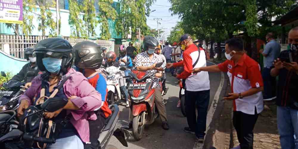 Kegiatan yang dimotori Kelompok Masyarakat Pemerhati Infrastruktur Banua (KMPIB), Garda Taruna Nusantara (Gantara), Front Merah Putih, Lembaga Pengawas Pelapor Korupsi (LP2K), Garuda Muda Borneo (GMB), Forum Bersama (Forbes), Jaringan Kota (Jarkot) membagikan ribuan masker secara langsung kepada pengguna jalan.