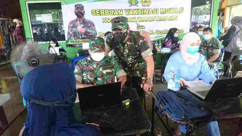 Dandim 1007/Banjarmasin Kol Inf oki Andriansyah Adiwriya mengatakan, serbuah vaksinasi pihaknya sudah puluhan kali dilaksanakan selama satu tahun ini. Yang penting pelayanan sudah dilaksanakan di semua titik wilayah, hingga kelompok dan komunitas hingga karyawan perusahaan.