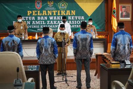 Banjarbaru, BARITO – Plt Asisten Pemerintahan dan Kesra Sekretariat Daerah Provinsi Kalimantan Selatan (Kalsel), Adi Santoso mewakili Pj Gubernur Kalsel melantik Ketua dan Wakil Ketua Baznas Periode 2021-2026, Senin (12/4) di Ruang Rapat H Aberani Sulaiman.