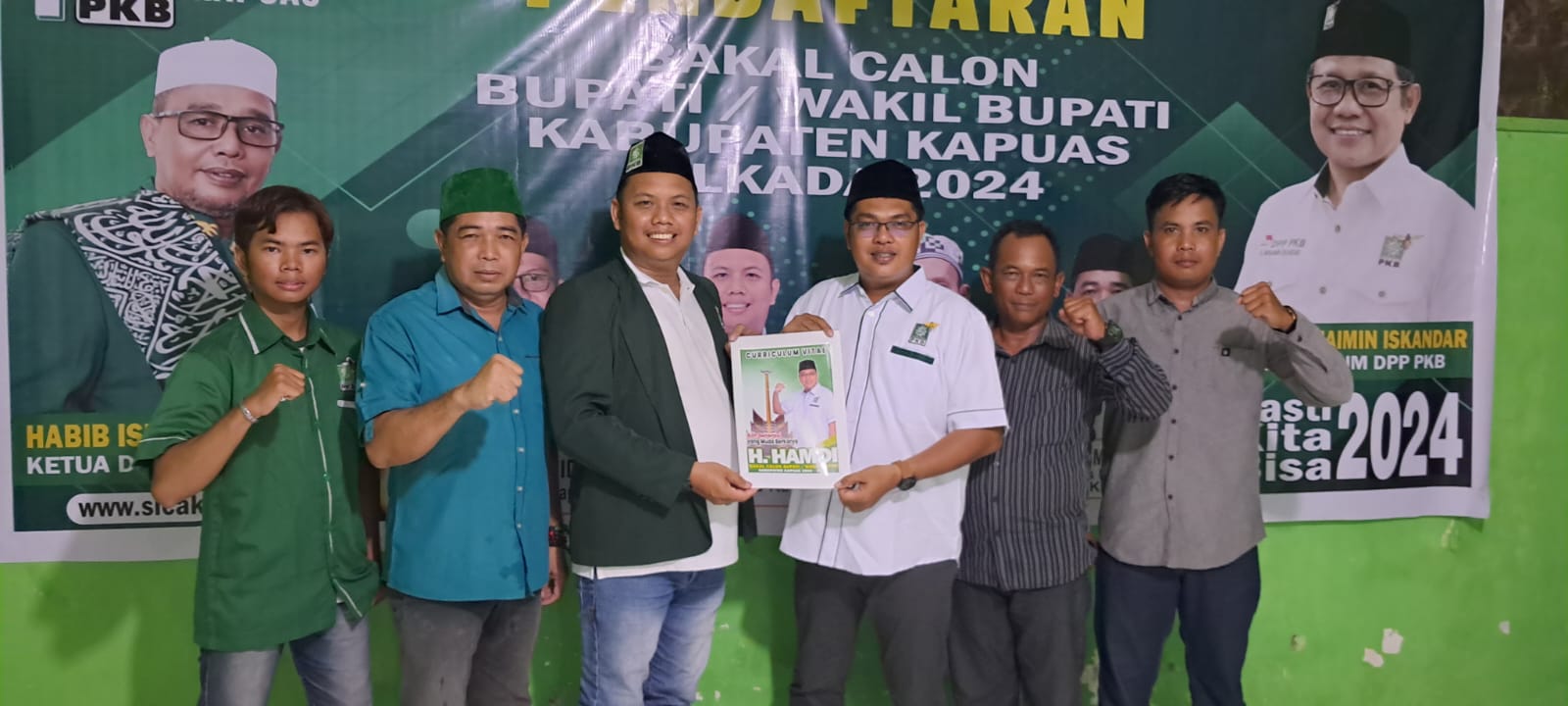 Hamdi saat mendaftar didampingi Anggota Laskar Pangeran Antasari Kalimantan Kabupaten Kapuas yang langsung diterima Ketua PKB Kapuas Tommy Saputra dan didampingi Sekretaris Desk Pilkada Iwan Yusmadianto dan Kepala Sekretatiat Rama Dani.