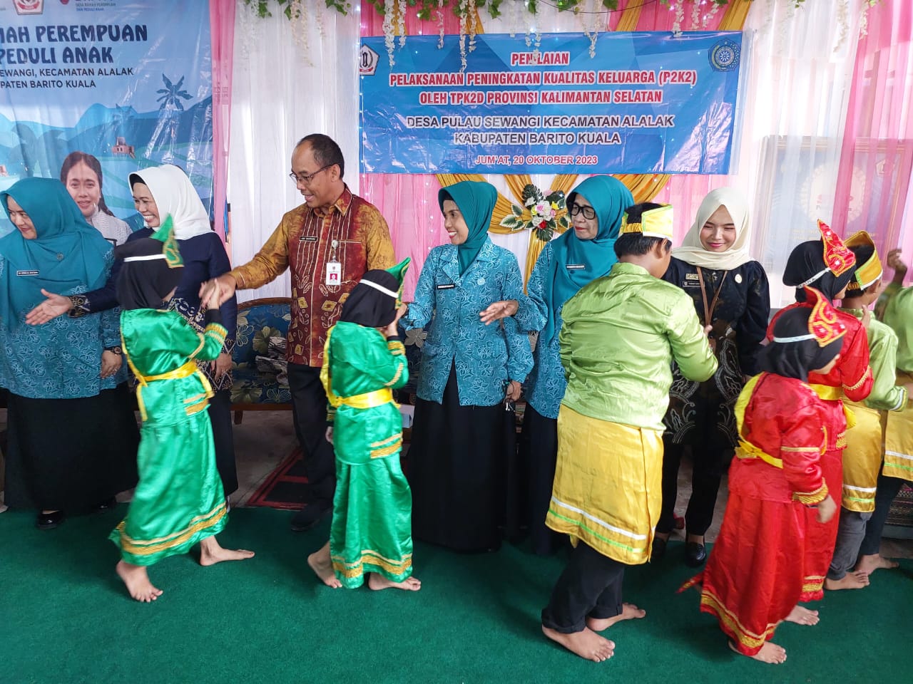 Hadir langsung Pj Ketua TP PKK Kabupaten Barito Kuala, Suharyanti Mujiyat, yang terkesan dengan penampilan tarian oleh anak-anak dibawah binaan Kades Syarifah Saufiah, S.Pd.