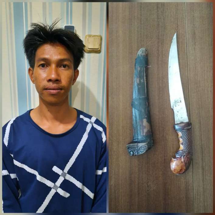Warga Jalan Tamban Muara Baru RT 14 Kecamatan Tamban Kabupaten Barito Kuala (Batola) ini pun diringkus karena kepemilikan barang bukti (barbuk) sajam satu bilah sajam jenis pisau panjang 24,5 Cm, lengkap dengan gagang dan sarungnya terbuat. Termasuk satu tas selempang warna merah hati merk Polo Ryo yang semula sajam itu dari dalam tas tersebut.