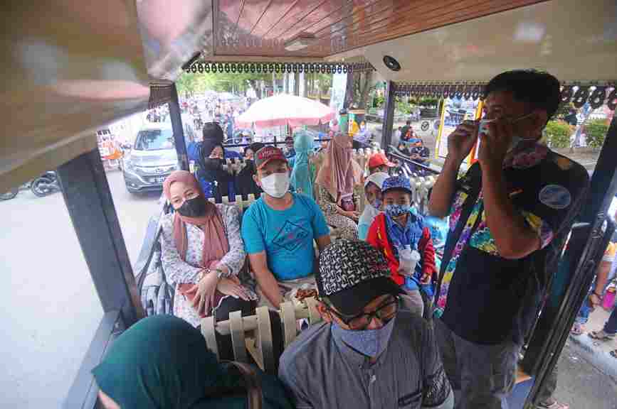 Setiap penumpang yang ingin naik bus ini, hanya menyiapkan uang 10.000 rupiah, untuk biaya operasional bus, dan diwajibkan memakai masker serta mematuhi protokol kesehatan yang ketat.