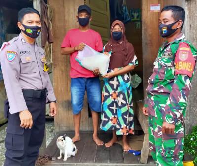 Polres Hulu sungai Tengah Polda kalsel, Binmas Polres Hulu Sungai Tengah bersama Kodim 1002 Barabai menyalurkan bantuan berupa beras kepada warga terdampak Covid-19, Kabupaten Hulu Sungai Tengah, Senin (31/8/2020).