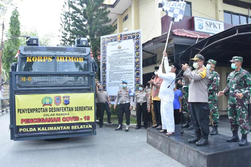 Berdasarkan dari hasil rapat koordinasi yang digelar di Mapolda Kalsel pada Senin (30/3/2020), proses penyemprotan dimulai dengan pelepasan armada tim penyemprotan disinfektan. Tim dilepas Gubernur Kalsel H.Sahbirin Noor bersama Kapolda Kalsel Irjen Pol Yazid Fanani, Danrem 101/Antasari Kolonel (Inf) M Syech Ismed, Ketua DPRD Provinsi Kalsel DR (HC). H.Supian HK, S.H., M.H di Mapolda Kalsel pada pukul 09.00 wita dan dilanjutkan kegiatan penyemprotan serentak.