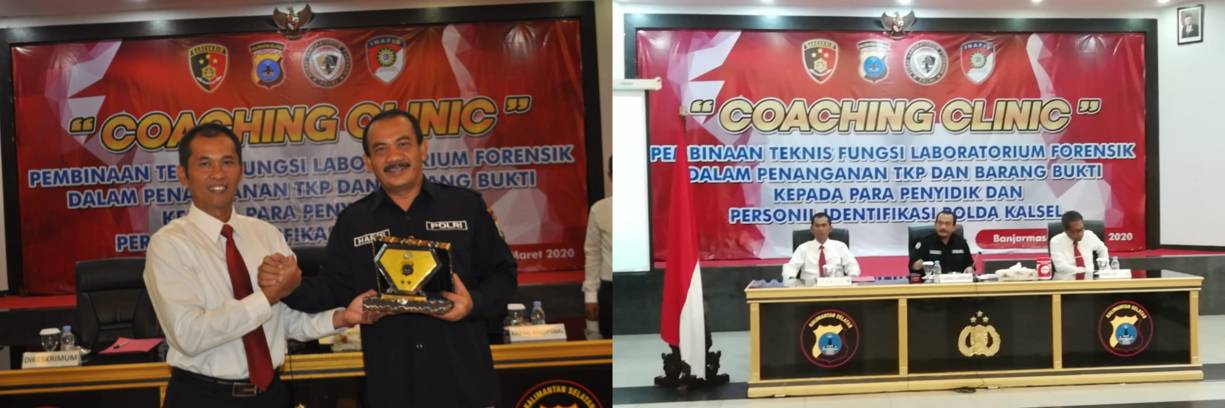 Coaching Clinic Pembinaan Teknis Fungsi Laboratorium Forensik dalam penanganan TKP dan barang bukti kepada para penyidik dan personil identifikasi berlangsung di Aula Bhayangkari Mathilda Batlayeri Polda Kalsel, Kamis (5/3/2020) pukul 08.00 Wita.
