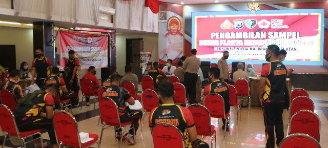 Polda Kalsel, Banjarmasin – Bidang Kedokteran dan Kesehatan (Biddokkes) Polda Kalsel bekerja sama dengan Rumah Sakit Bhayangkara dan Palang Merah Indonesia (PMI) menggelar Pengambilan Sampel Donor Plasma Konvalesen para penyintas Covid-19 personel Polri dan PNS Polri, Jumat (19/2/2021) pukul 08.00 Wita.
