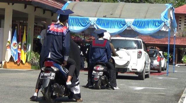 Mulanya wisuda tatap muka ini digelar Politeknik Negeri Banjarmasin (Poliban), pada akhir Oktober 2020 lalu, dengan menerapkan sistem drive thru. Yakni, para wisudawan dan keluarganya menunggu di kendaraan. Kemudian, mereka dipanggil satu per satu. Saat tiba di mimbar yang ditempati direktur dan para petinggi Poliban, wisudawan turun dari kendaraan untuk menerima pengukuhan.