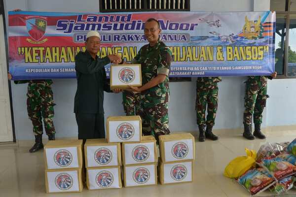 Penyerahan bantuan bertempat di Lapangan Amarta Lanud Sjamsudin Noor, Panti Asuhan Ar-Rahman di Banjarbaru, Warga yang tinggal di sekitar Air Weapon Range (AWR) di Maluka Baulin, Kabupaten Tanah Laut (Tala) dan Panti Asuhan Bakti Luhur di Banjarmasin.