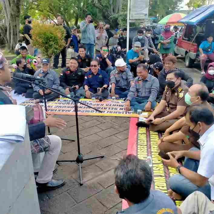 Banjarmasin,BARITO – Sejumlah Tokoh Aktivis Lembaga Swadaya Masyarakat (LSM) Antikorupsi yang tergabung dalam Kelompok Pemerhati Kinerja Aparatur Pemerintah dan Parlemen (KPK-APP) pimpinan Aliansyah, Forum Peduli Bangsa dan Negara ( Forpeban) Pemuda Islam pimpinan Roly dan seorang tokoh aktivis antikorupsi senior Udin Palui menggelar aksi di KM 0 Jalan Jendral Sudirman Kota Banjarmasin . Seraya membentangkan berbagai spanduk yang berisi pesan untuk tidak korupsi , kegiatan para aktivis yang membawa puluhan massa nya itu memperingati Hari Antikorupsi sedunia yang diperingati setiap tanggal 9 Desember. Dihadiri Kasi Penkum Kejaksaan Tinggi Kalsel Romadu Novelino Simanjuntak SH serta pejabat Ditreskrimsus Polda Kalsel mereka duduk bersila seraya mendengarkan dua pemadihin yang disela sela aksinya yang sering membuat masyarakat yang hadir tertawa geli juga menyampaikan pesan dan sindiran antikorupsi. Selain itu juga dimainkan pentas teatrikal yang memggambarkan kondisi negeri ini yang masih digerogoti “tikus tikus “koruptor.