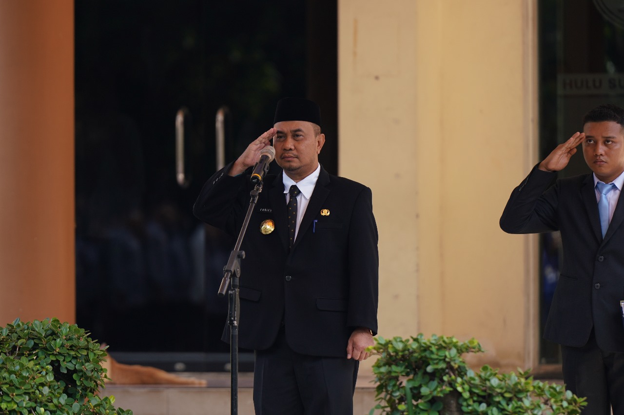 Pjs Bupati HST, H Faried Fakhmansyah bertindak sebagai Inspektur Upacara, diikuti peserta dari unsur Kepala SOPD Lingkup Pemkab HST, Forkopimda, organisasi kepemudaan, perwakilan pelajar dan mahasiswa serta tamu undangan lainnya.