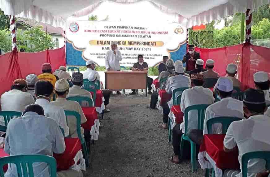 Peringatan hari buruh kali ini dilaksanakan dengan buka puasa bersama dan shalat magrib berjamaah, di Kantor KSPSI, Jalan Mantui Permai, Rt 2, No 36, Kelurahan Mantuil, Kecamatan Banjarmasin Selatan, Kota Banjarmasin.