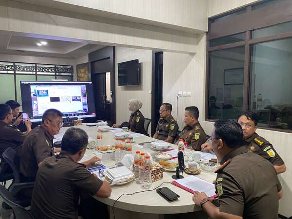 Ekspose pengusulan penghentian penuntutan dilakukan Kajati Kalsel DR. Mukri SH.MH, di damping Wakajati Ahmad Yani, SH.MH, Asisten Tindak Pidana Umum, serta para kasi pada bidang tindak pidana umum yang berlangsung secara virtual.