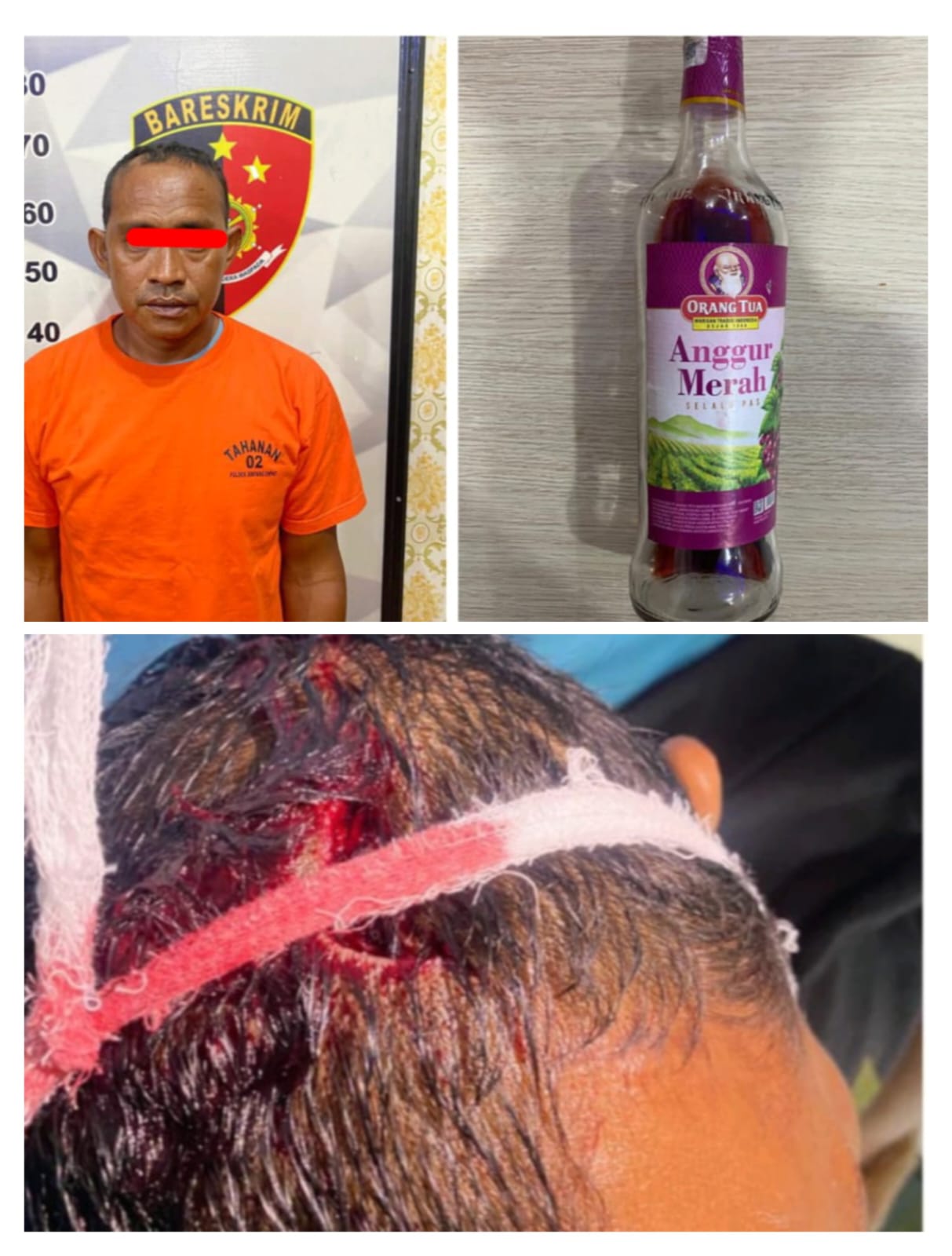 Kemudian pelaku di bawa Ke Polsek Simpang Empat beserta barang bukti 1 buah botol minuman keras merk Anggur Merah cap orang tua yang terbuat dari kaca.