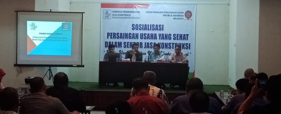 Anggota Komisi Pengawas Persaingan Usaha (KPPU) RI Harry Agustanto membuka sosialisasi persaingan usaha yang sehat sektor jasa konstruksi yang bekerjasama antara KPPU dengan Lembaga Pengembangan Jasa Konstruksi (LPJK) Provinsi Kalimantan Selatan, di aula LPJK Provinsi Kalsel, Sabtu (15/2)).