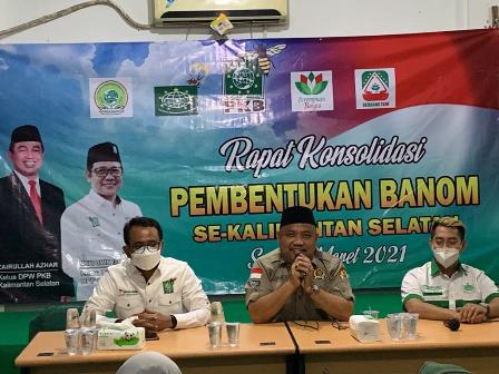Banjarmasin, BARITO – Dewan Pimpinan Wilayah (DPW) Partai Kebangkitan (PKB) Provinsi Kalimantan Selatan melaksanakan Rapat Konsolidasi Pembentukan Badan Otonom (Banom) Partai se-Kalimantan Selatan dihadiri Sekretaris DPW PKB Kalsel H Hormansyah, Ketua Umum DPN Gemasaba Heru Widodo, perwakilan Gemasaba, Garda Bangsa, Perempuan Bangsa, Gerbang Tani dan mahasiswa, Senin (1/3/2021).