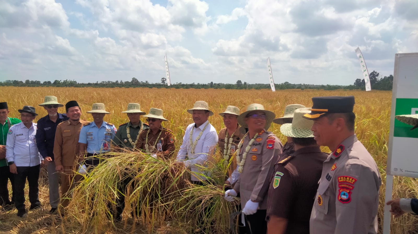 Panen raya dilaksanakan di lahan sawah pertanian di Desa Anjir Pasar II Kabupaten Barito Kuala (Kalsel), Selasa (13/8).