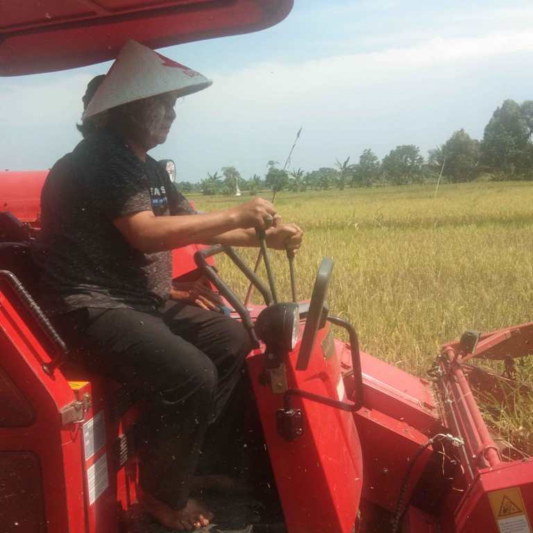 Pada kesempatan itu, selain melakukan pemotongan padi menandai panen perdana dan penanaman bibit,  Paman Birinm langsung mengoperasikan mesin pemotong padi dengan piawai tanpa terlihat canggung.
