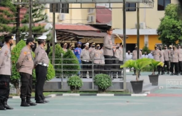 Sebelum meninggalkan Polda Kalsel, Irjen Pol Nico Afinta memimpin apel pagi di halaman Mapolda Kalsel, Kamis (19/11/2020)