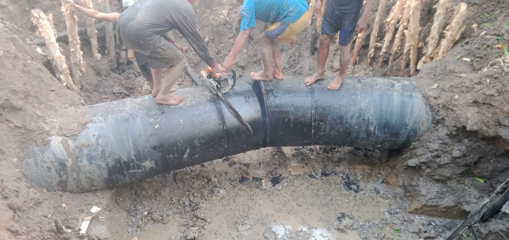 Banjarmasin, BARITO – Beberapa Saluran ledeng wilayah Banjarmasin terpaksa terhenti total. Pasalnya, pipa distribusi diameter 800 di Jalan Pramuka mengalami kebocoran parah, sejak, Minggu (8/9) pagi.