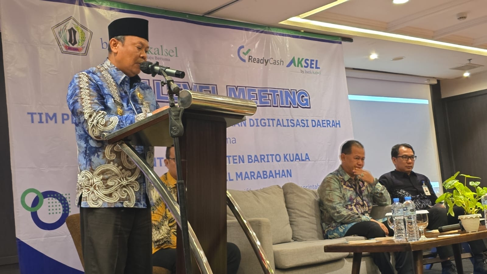 Marabahan, BARITOPOST.CO.ID – Rapat koordinasi antar pemerintah daerah dan Bank Kalsel dalam forum High Level Meeting (HLM) Tim Percepatan dan Perluasan Digitalisasi Daerah (TP2DD) berlangsung di Yogyakarta pada, Senin (24/6). Berhadir dalam rapat Pj. Bupati Mujiyat, Perwakilan Direksi Bank Kalsel, dan para pimpinan SKPD.