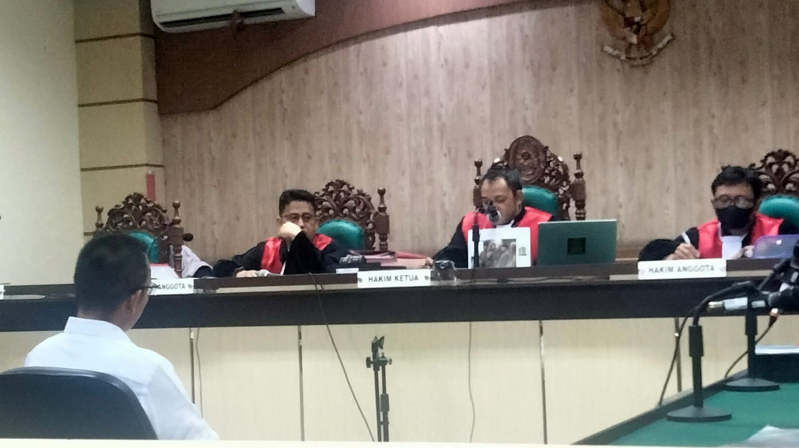 Plt Dinas Sosial, PPKB, dan PPPA Kabupaten Hulu Sungai Tengah (HST), Drs Wahyudi Rahmat saat mengikuti sidang di pengadilan tipikor.
