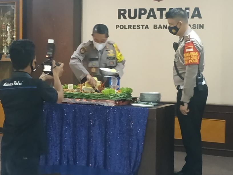 Banjarmasin, BARITO – Peringatan HUT Korps Lalu Lintas Polri ke-65 di jajaran Polresta Banjarmasin dilakukan secara sederahana yakni menggelar syukuran di Aula Mapolresta, Selasa (22/9/2020) siang. Dengan tema “Road Safety Policing : Implementasi E-Policing Pada Fungsi Lalu Lintas di Era Digital, diharapkan budaya tertib berlalu lintas menjadi kebutuhan dan keselamatan semua orang.