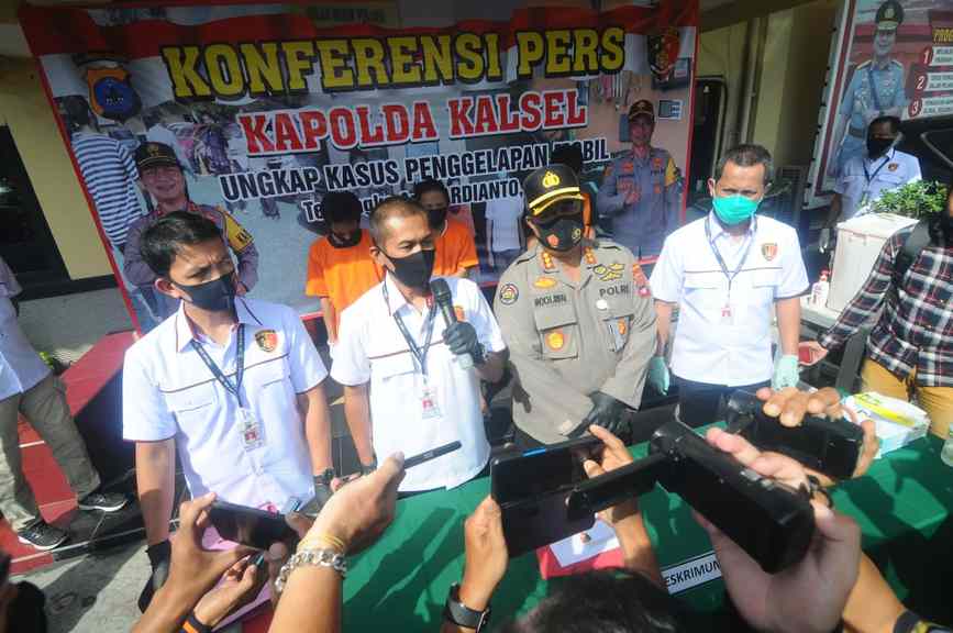 “Kasus ini terungkap setelah ada laporan seorang pemilik rental mobil,” jelas Kapolda Kalsel melalui Kabid Humas Polda Kalsel Kombes Pol Mochamad Rifai didampingi Direktur Dit Reskrimum Kombes Pol DR Sugeng Riyadi MH MSi dan Kasubdit 3 Jatanras Kompol Rizal Muttaqin kepada wartawan melalui press conference, Kamis (30/7/2020) pagi