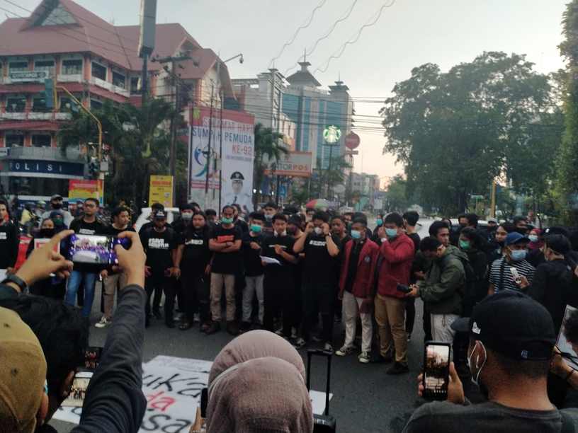 Banjarmasin, BARITO – UNJUK rasa penolakan Undang-Undang Cipta Kerja atau Omnibus Law sekaligus memperingati Sumpah Pemuda yang digelar Badan Eksekutif Mahasiswa (BEM) se Kalimantan Selatan (Kalsel) berjalan kondusif tertib dan lancar.