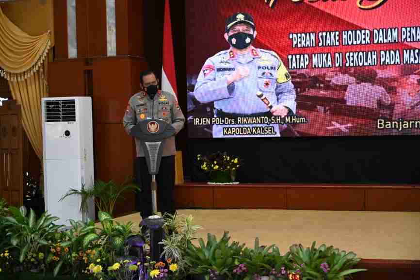 Kapolda pun menghimbau kepada seluruh pihak baik para Murid, Orang tua, Guru, Sekolah dan manajemen pendidikan untuk ikut berpartisipasi mewujudkan Pembelajaran Tatap Muka (PTM) di Kalimantan Selatan dengan cara bersama-sama melawan Covid-19