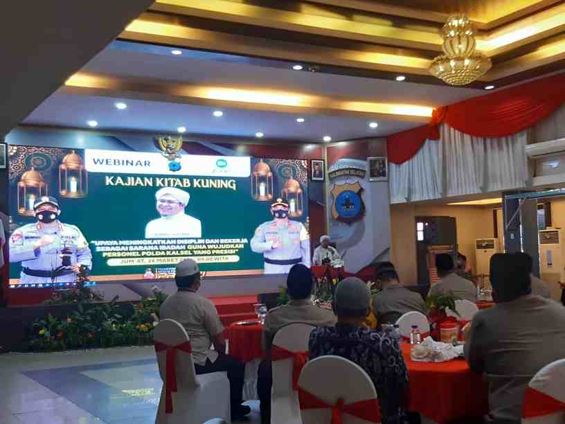 Banjarmasin, BARITO – Kepolisian Daerah Kalimantan Selatan (Polda Kalsel) melaksanakan kegiatan pembinaan rohani Kajian Kitab Kuning menghadirkan Ustadz H Ilham Humaidi di Aula Bhayangkari Mathilda Batlayeri Mapolda Kalsel, Jumat (26/3/2021).