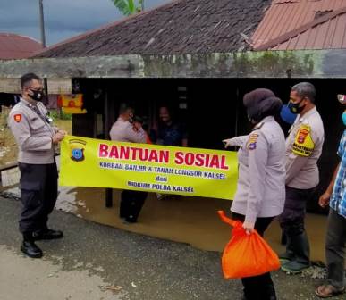 Polda Kalsel, MARTAPURA – Bidang Hukum Polda Kalsel salurkan bansos berupa paket Sembako terhadap korban banjir wilayah Kab. Banjar bertempat di kec. Martapura Timur kab. Banjar, Kamis (04/2/2021) siang.