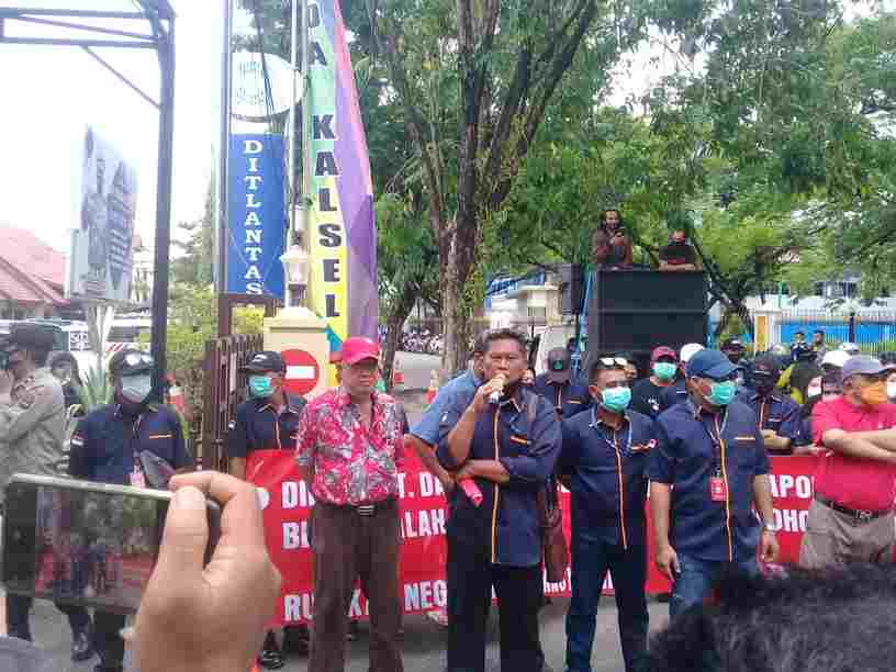 Banjarmasin, BARITO – Kamis ( 24 / 6/202) pagi Kantor Polda dan Kejati Kalsel disambangi massa dalam dua kelompok berbeda